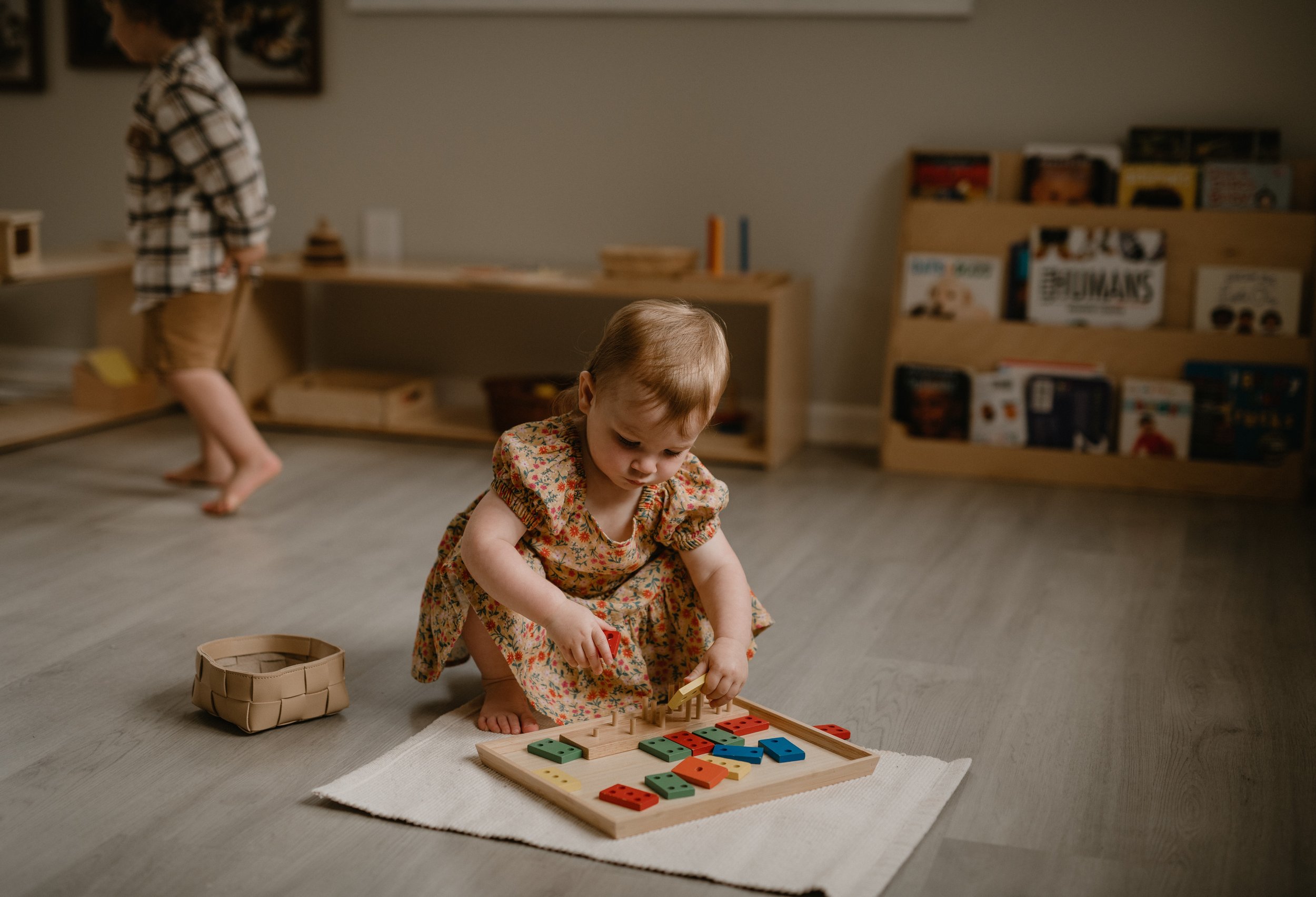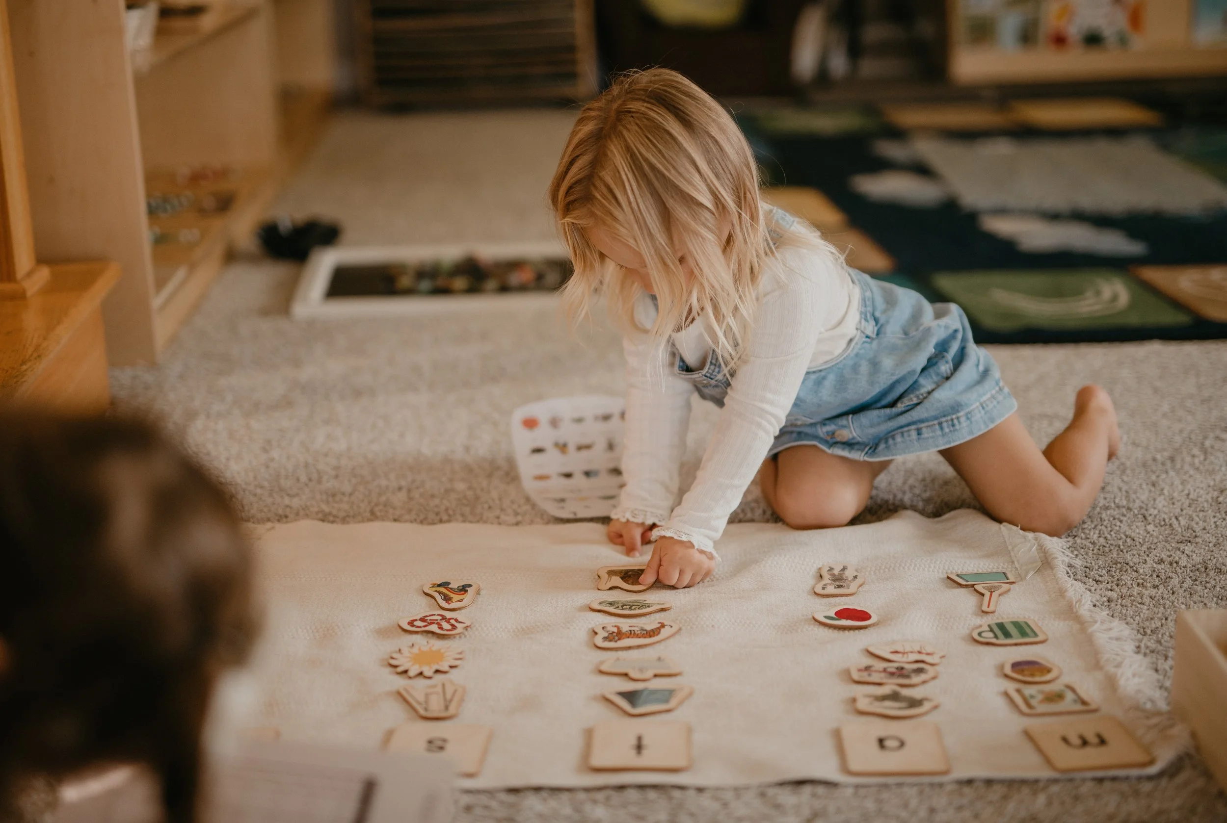 Toddlers walking steadily up to 3 years old are taught by Montessori Certified teacher; Ms. Heidi. We learn language, fine and gross motor skills, social skills, and practical life.